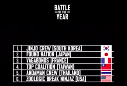 2018.11.18 Eventsbboyadmin Battle of the year 2018速報 ポスト シェア はてブ 送る Pocket Found NationとJinjoCrewの決勝で、優勝はJinjoCrew!! Found Nationはルーティーンも完璧で惜しかったのですが、残念です。 日本代表お疲れ様でした! ショーケースの順位は以下になります。 台湾4位、タイ5位とアジアのレベルが上がってきていますね。 #boty #bboying #ブレイクダンス